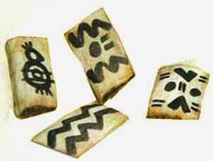 ( ubicado en la parte de atrás de la lengua de las vacas), lo gastaban hasta que medía unos 7 x 1,5 cm, de un lado quedaba blanco y del otro le pintaban líneas negras. Cada uno de ellos tenía una cara lisa y la otra pintada con líneas negras.